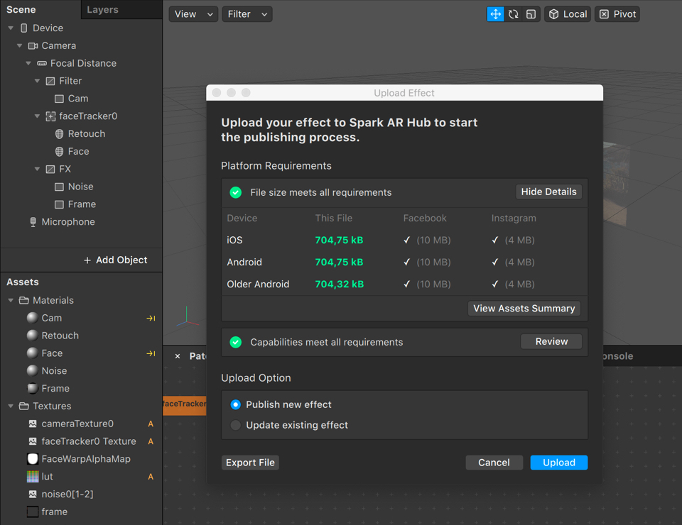 – Export file (*.arexport) for Spark AR